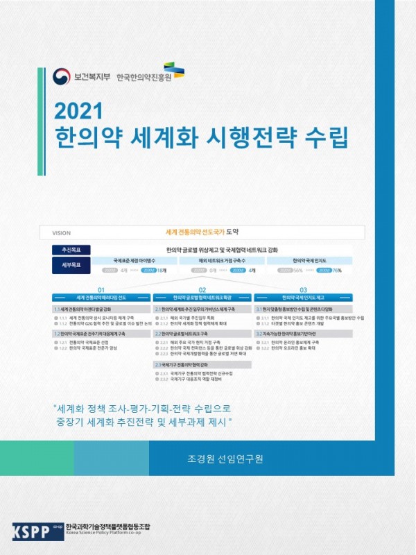 한의약 세계화 시행전략 수립 관련링크 페이지 정보 작성일22-03-03 13:13 조회5,987회 본문 한의약 정책의 글로벌 역량 강화를 위한 정책 조사 및 대안 제시 이전글 다음글 목록