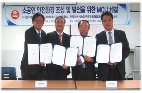 한국과학기술정책플랫폼협동조합(이사장 권혁성)은 사단법인 한국소공인진흥협회(회장 곽의택)와 한국방재안전학회(회장 김재권), 주식회사 LIG시스템(대표이사 신종현)과 지난 26일 중구 소재 동국대학교 충무로영상문화콘텐츠연구원 충무홀에서 '소공인 안전환경 조성 및 발전을 위한 양해각서(MOU)’를 체결했다고 밝혔다.